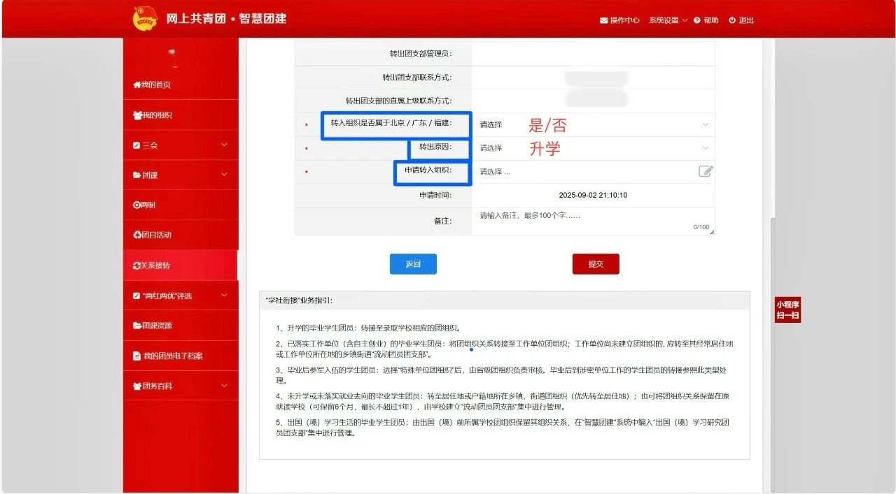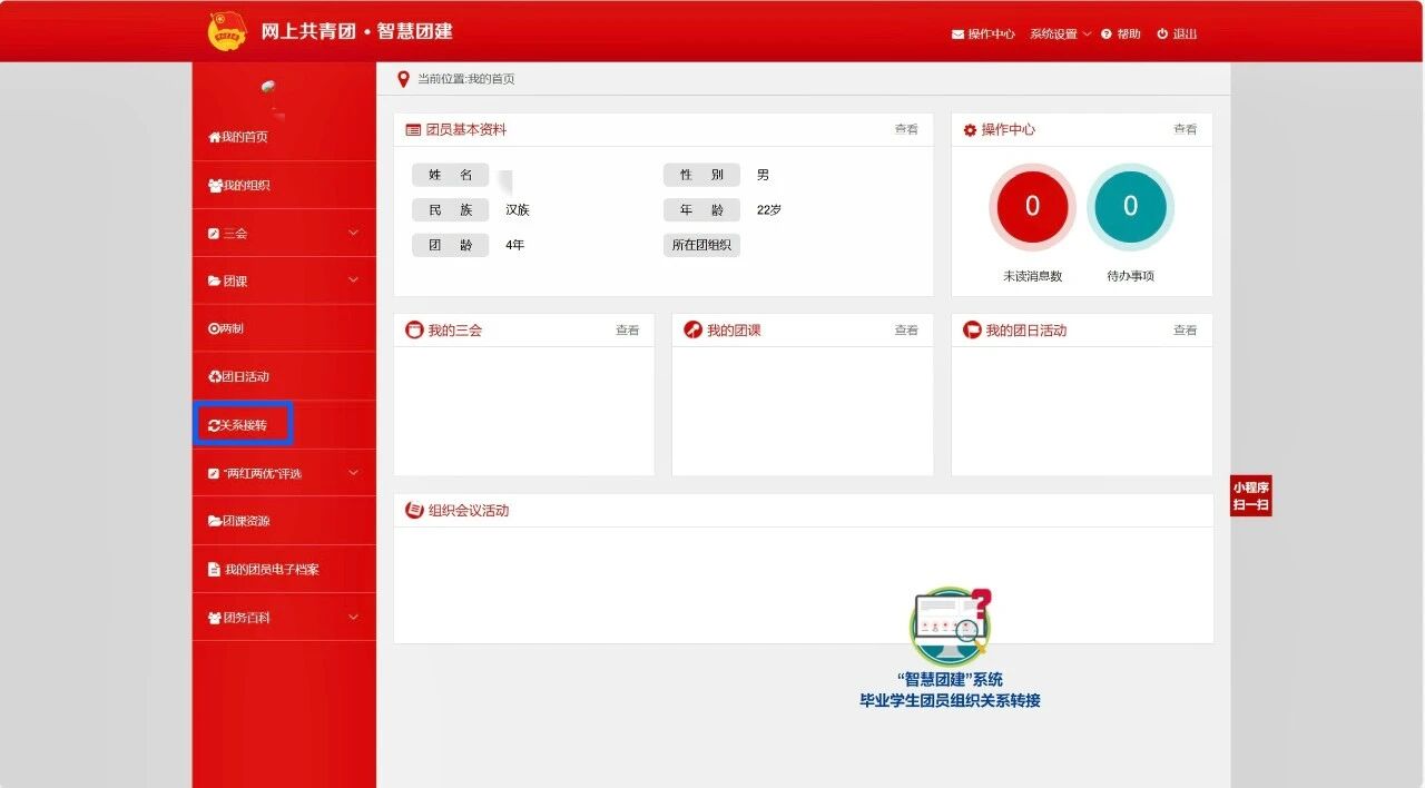 (2)由团员个人发出转接申请后,需联系原团籍所在地团委老师登入“智慧团建”系统进行审批。