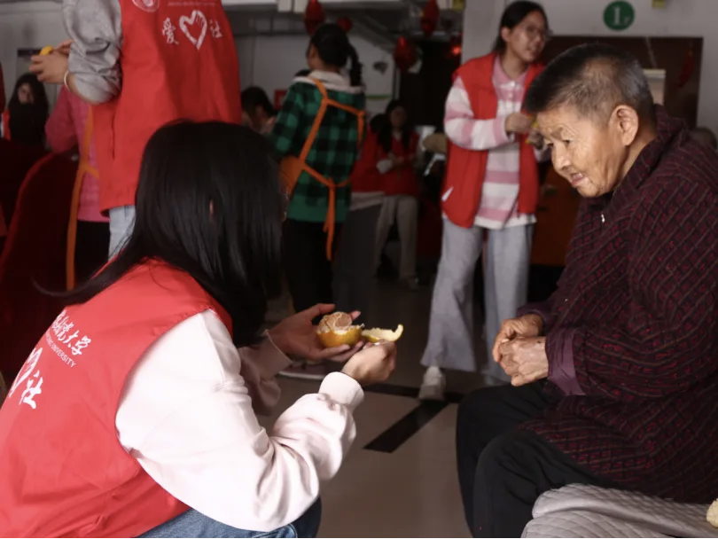 “岁岁重阳,今又重阳”,当这句老话在秋风中流转,湘湖敬老院早已被暖意填满。爱心社的志愿者们拎着鼓鼓的零食袋与新鲜水果,像一群传递阳光的“温暖使者”,将心意稳稳送到老人身边。