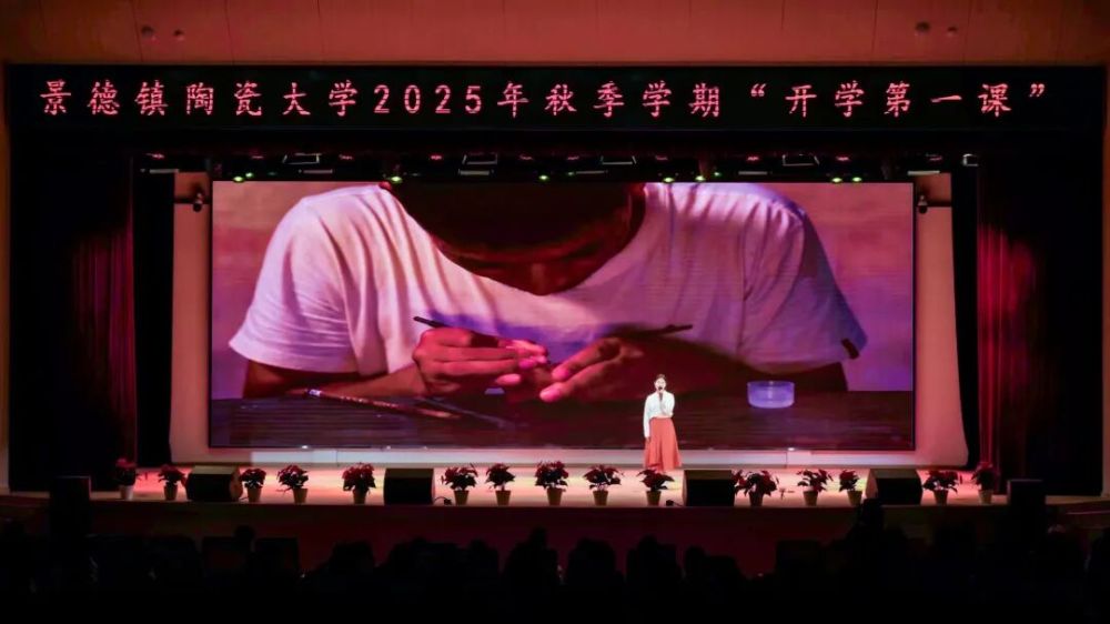 在《景德镇陶瓷大学校歌》的大合唱歌声中,景德镇陶瓷大学2025年秋季学期“开学第一课”落下帷幕。