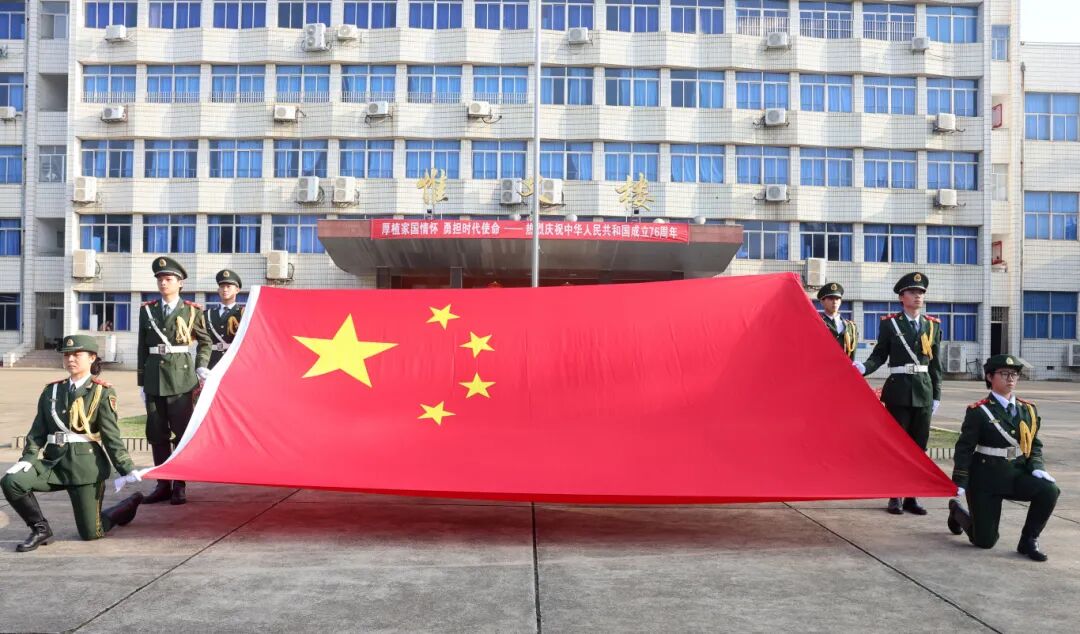 为热烈庆祝中华人民共和国成立76周年,10月1日清晨,南昌航空大学在前湖校区东大门航空文化广场与上海路校区教学主楼前火箭广场同步举行国庆升旗仪式。全体校领导,各职能部门和学院负责同志、师生代表参加,大力弘扬爱国主义精神,激发民族自豪感,凝聚奋进力量。