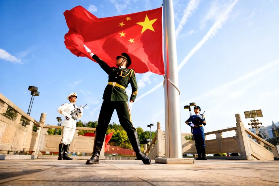 10月1日上午,南昌大学在树人广场举行“我和祖国共成长”庆祝中华人民共和国成立76周年升国旗仪式,厚植师生爱国情怀,同筑民族复兴根基。师生代表3000余人参加活动,共同见证五星红旗冉冉升起的庄严时刻。