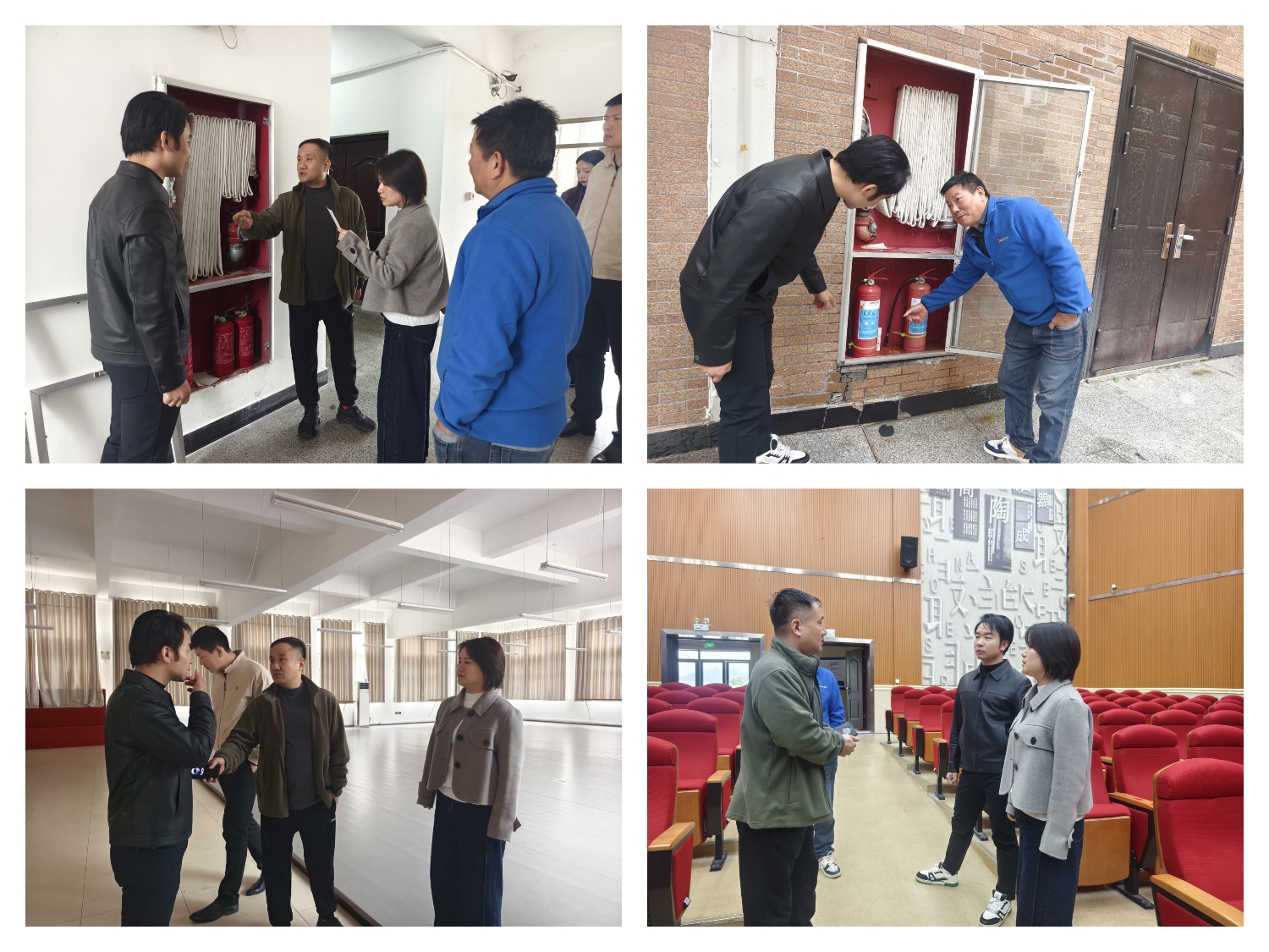 11月24日下午,保卫处相关负责同志前往我校学生活动中心大礼堂、排练室、学生组织办公室等地开展消防安全检查,校团委副书记范文婷、各科室负责人一同开展消防安全检查。