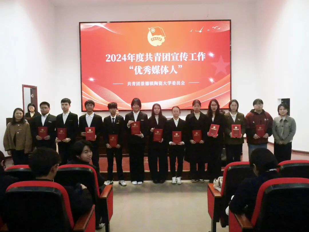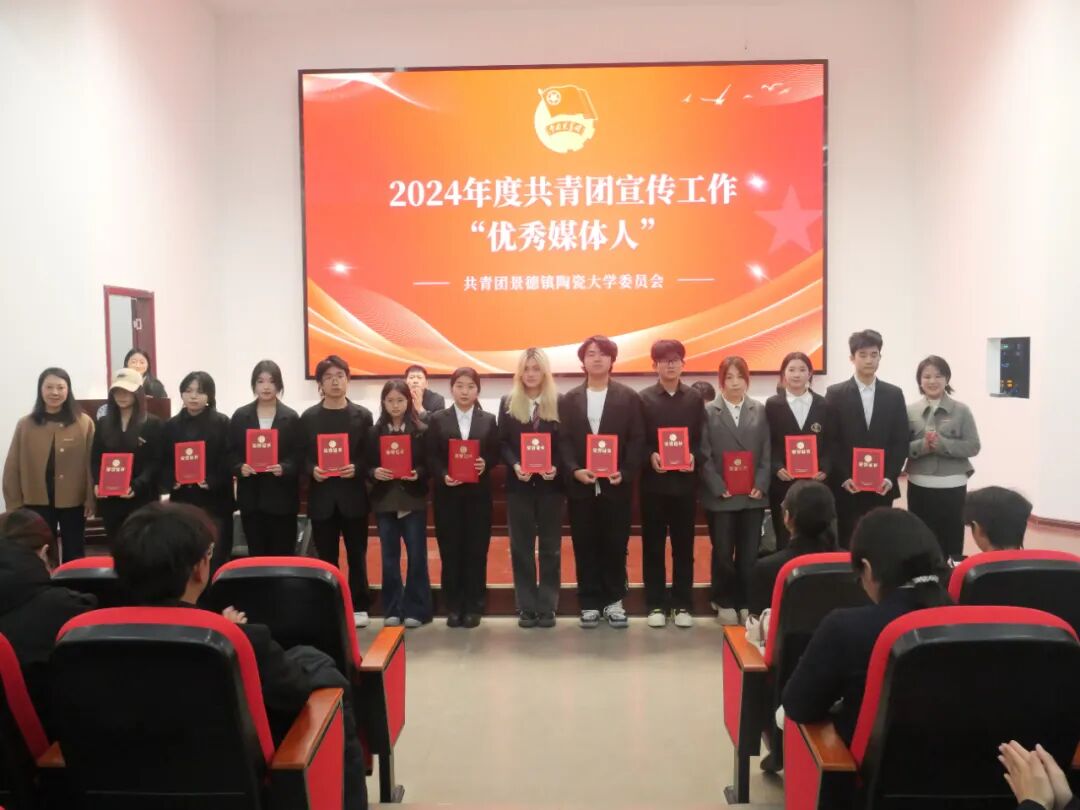12月11日,景德镇陶瓷大学2024年度共青团宣传工作表彰大会暨团属媒体发展论坛在多功能报告厅举行。校团委书记赵浩政、副书记范文婷,各科室全体成员,获表彰先进个人代表、全体团属媒体负责人、各校级学生组织代表、“陶大青年”融媒体工作室全体成员,共计150余人参加。