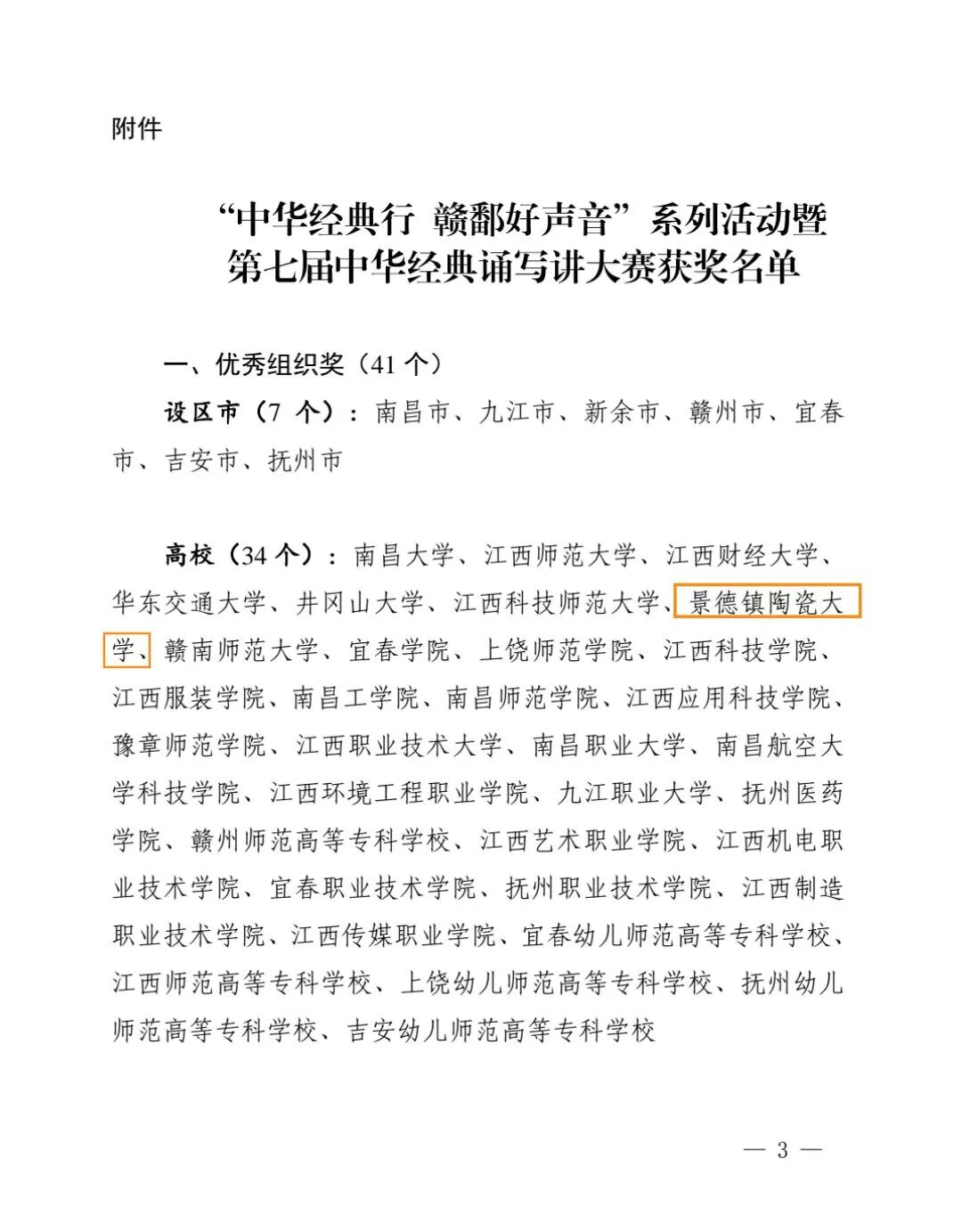 近日,江西省教育厅发布“中华经典行 赣鄱好声音”系列活动暨第七届中华经典诵写讲大赛评选结果。我校师生荣获优秀组织奖,并在省级大赛四项赛事7个组别中获一等奖1项、二等奖7项、三等奖11项,充分展现了学校在传承发展中华优秀语言文化方面的扎实成效和昂扬风貌。